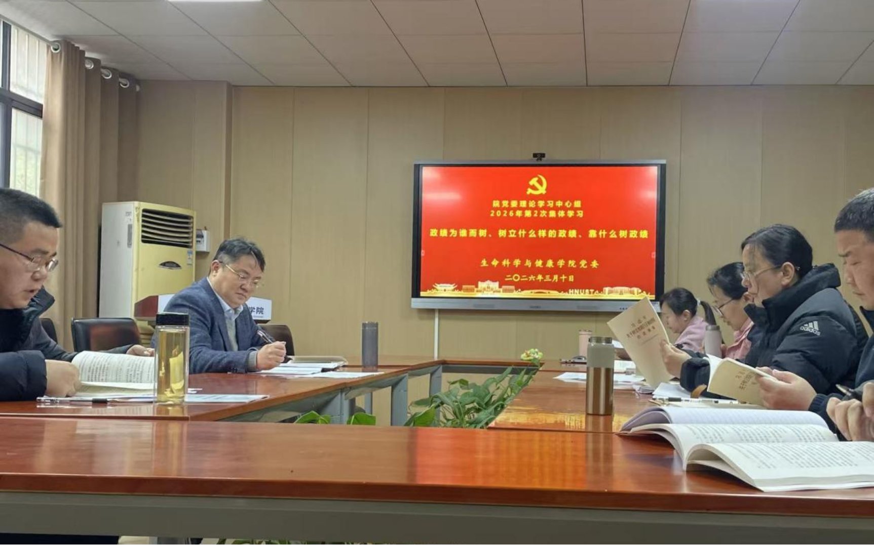 3月10日下午,优德88 党委理论学习中心组在生物楼110举行2026年第二次集体学习(扩大)会,深入学习贯彻习近平总书记关于树立和践行正确政绩观的重要论述精神,传达落实中央、省委党的建设工作领导小组会议精神。院党委书记龙赢主持会议并作总结发言,学院党委理论学习中心组成员、三办主任、教工党支部书记、组织员参加学习。