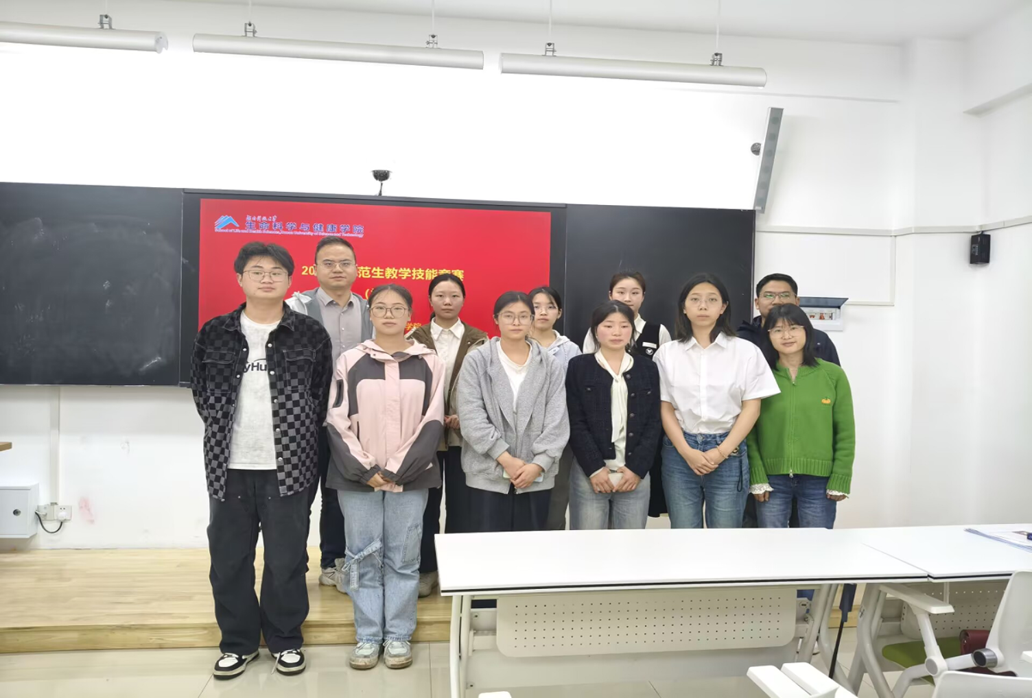 图为师生在生科楼218合影