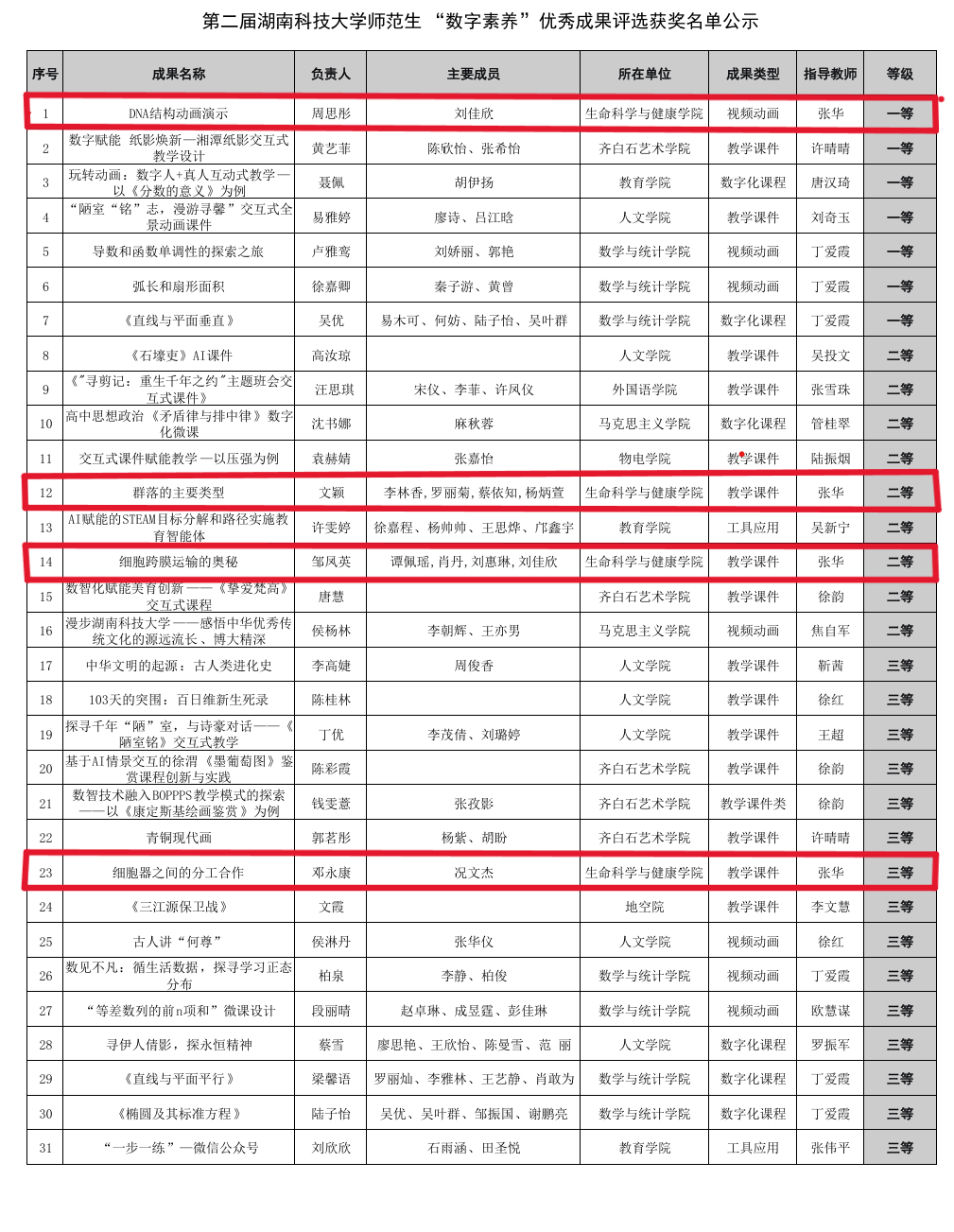 此次获奖不仅是对获奖学生数字素养与专业能力的肯定,也反映了生命科学与健康学院在师范生培养中,高度重视信息技术与教育教学的深度融合。学院将继续鼓励学生探索数字工具在教育实践中的应用,培养兼具学科素养与信息化教学能力的未来优秀教师,为基础教育高质量发展贡献力量。