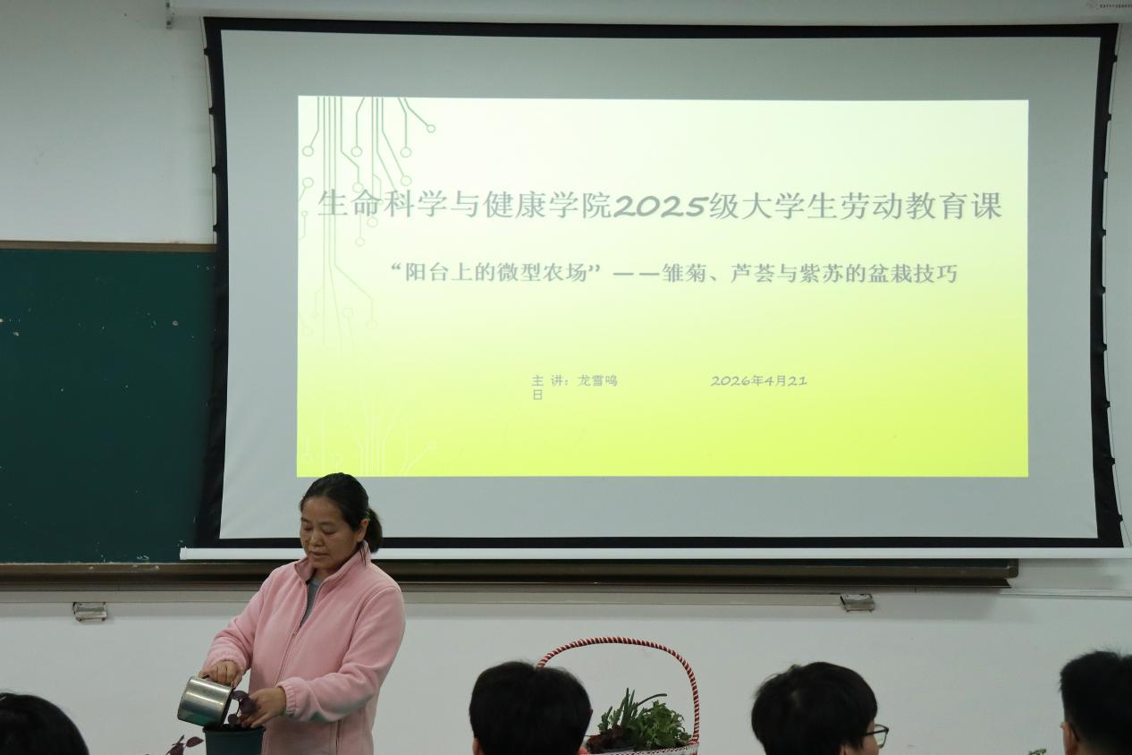 4月21日14:00,优德88 2025级大学生劳动教育课在八教103正式开讲。25级辅导员龙雪鸣老师担任主讲,以“阳台上的微型农场”为主题,围绕雏菊、芦荟与紫苏的盆栽技巧展开教学,带领同学们现场边学边做,完成了一场从“植物盲”到“生活家”的劳动实践。